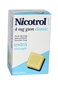 Nicotrol Gum supplies less nicotine than a cigarette (approximately one third the amount) and using gum instead of smoking means you avoid the harmful physical (irritation) and chemical (eg tars, carbon monoxide) effects associated with smoking.